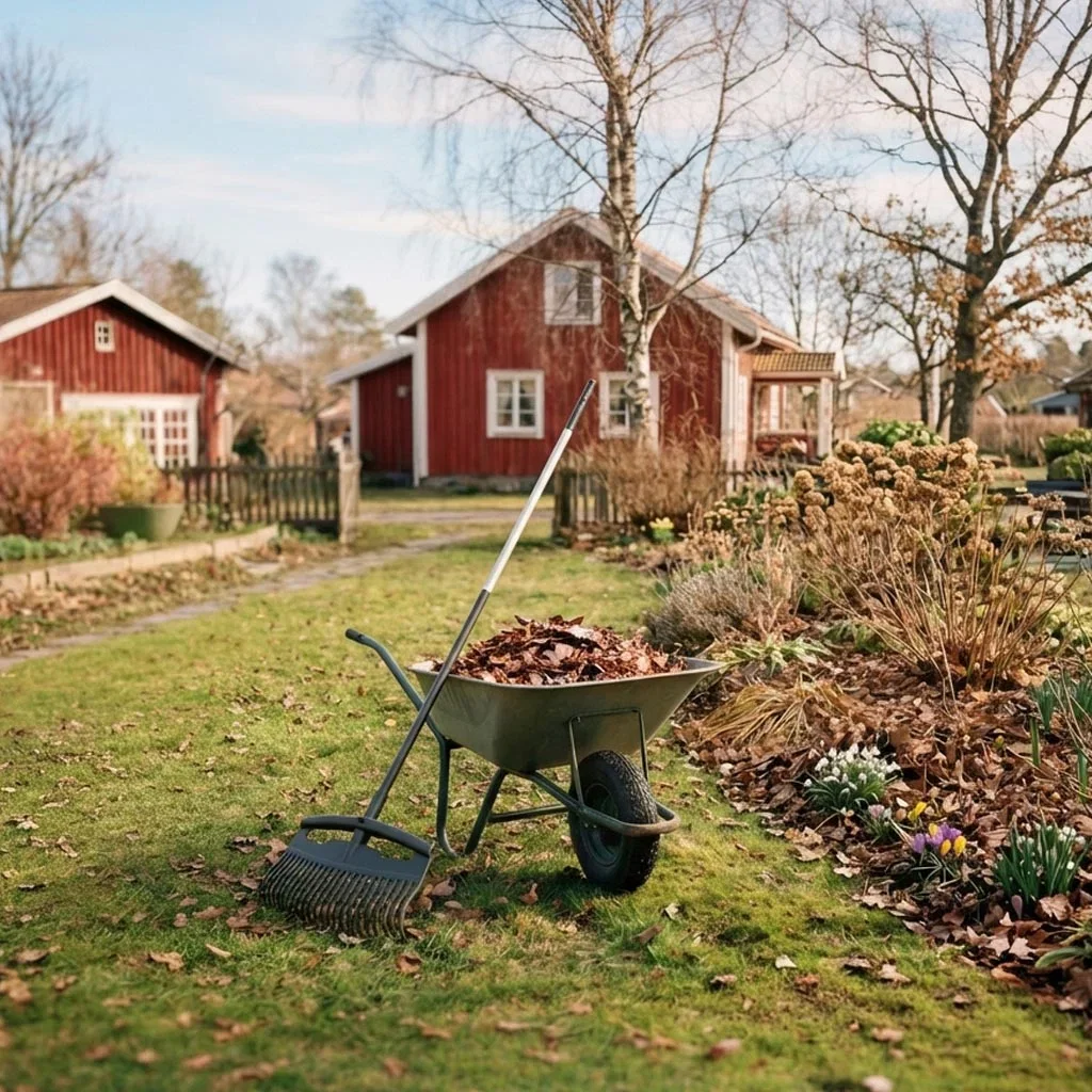 Clean away old plant debris and leaves and help the plants awaken after their winter rest. With good hedge shears and other tools, it's easy to make the garden and patio spring-ready. A little leaf and plant debris can advantageously be left between bushes and perennials. This rots and provides the soil with nutrients and structure. Collect everything you have cleaned up in a basket or wheelbarrow, and do a little sorting before you put it in the compost so that the decomposition process is faster.