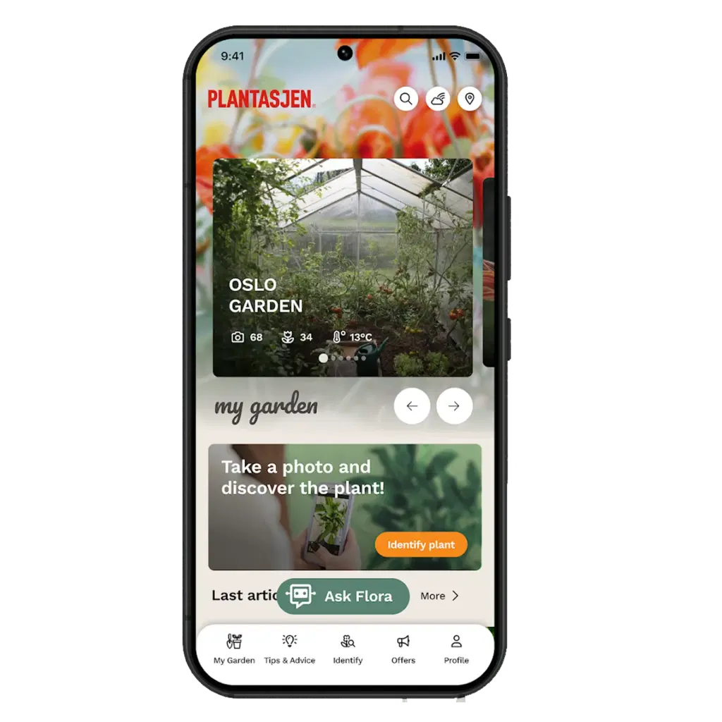 Get quick answers and good advice when you need it. The built-in garden assistant provides tips on plant care and helps you find the nearest Plantasjen store with opening hours and directions. A digital garden expert – right in your pocket.