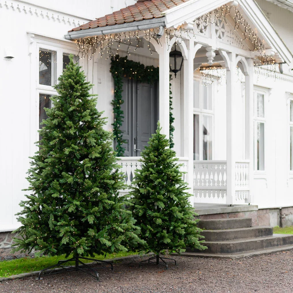 Kunstgranen Hovden er eventyrlig vakker og tåler å stå utendørs. Den finnes i flere størrelser.