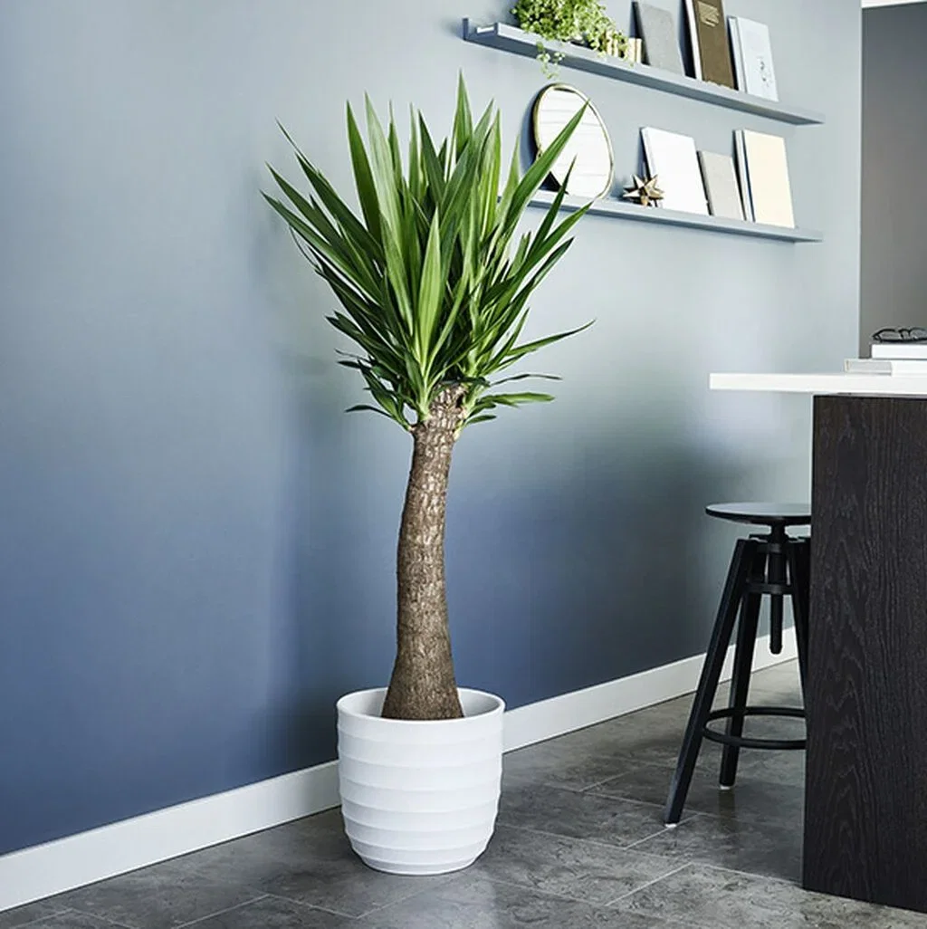 Yuccapalmen finnes i ulike varianter, fra små planter som er flotte i vinduskarmen til store palmer med flaskeformet stamme som kan stå på gulvet eller på en pidestall.
