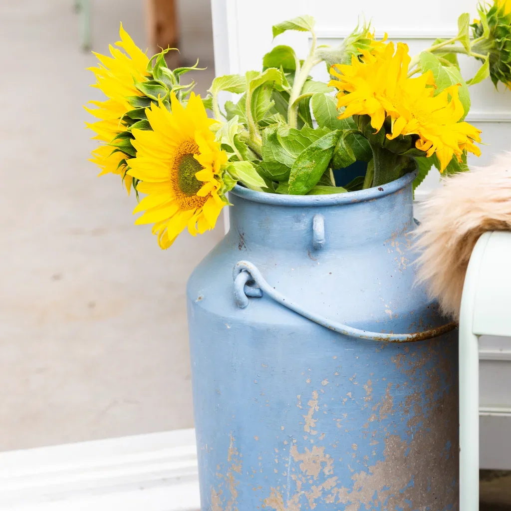 Lite kler solsikker bedre enn gamle melkespann. Det er noe nostalgisk, trygt og hyggelig over dem begge.