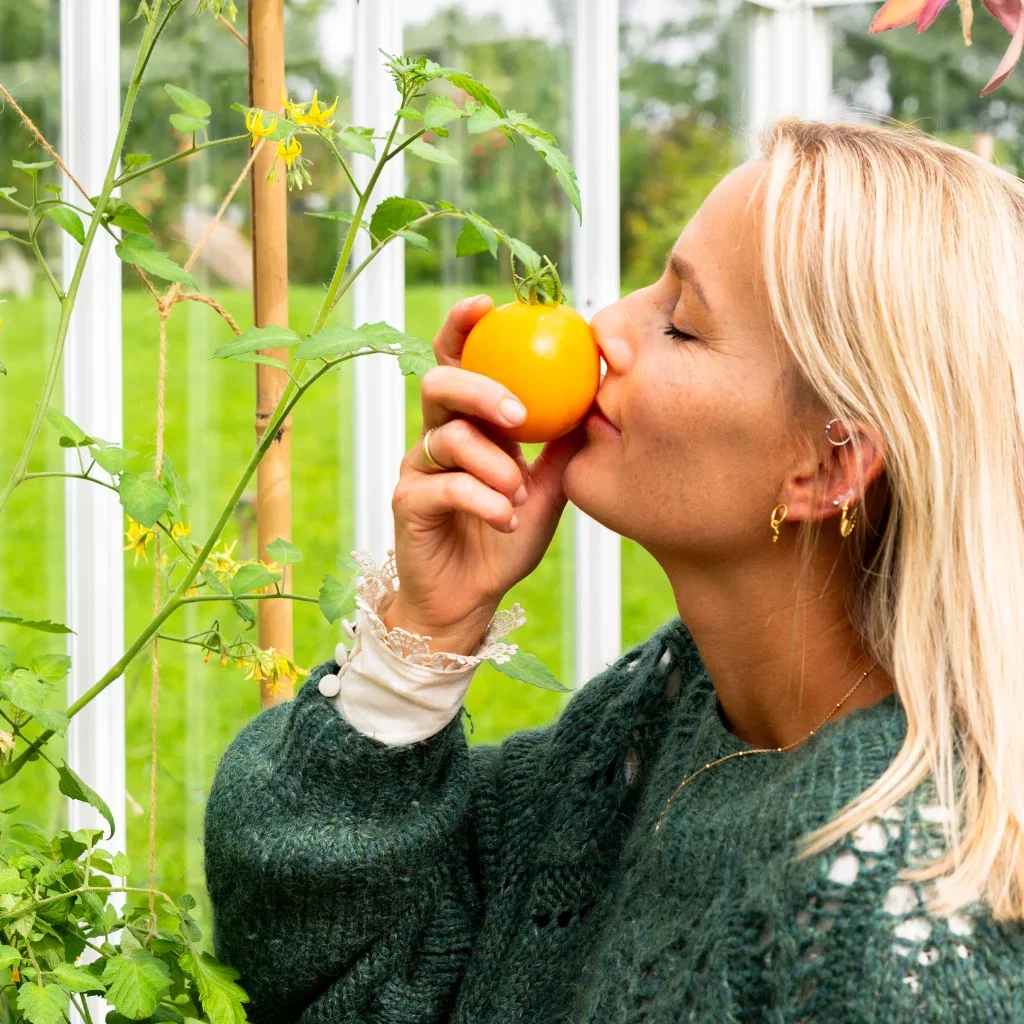 Aaah – duften av solmodne tomater! Anniken sår hvert år bifftomaten ‘Brandywine Yellow’. Hennes soleklare favoritt.