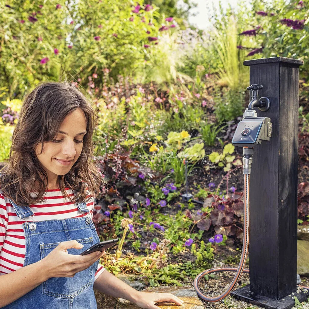 Styr vanningen med programmering i form av en medfølgende vanntimer og funksjonen Water Control. Du kan også velge systemer som kobles til telefonen via en app for å regulere vanningen selv.
